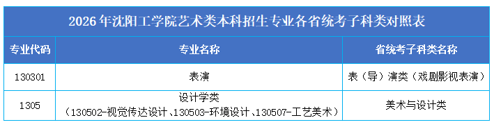 按教育部相关要求,报考我校艺术类本科专业的考生须按照各专业省级统考科类对应要求参加相应省级统考,我校2026年各艺术类本科专业招考类别和省级统考科类对应要求如下: